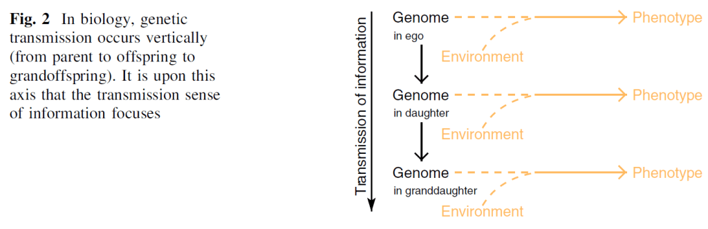 When biologists say something like “DNA contains information about the phenotype” there is an implicit directionality here. The information is supposed to flow from the genotype to the phenotype. However, this directionality is lost if we use information theory’s notion of mutual information.